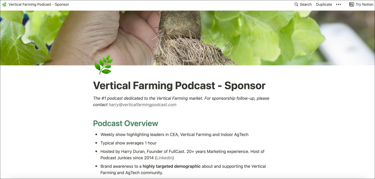 For example, the Vertical Farming Podcast is now featured in the popular industry newsletter iGrow News. This regular exposure helps convert readers into listeners.