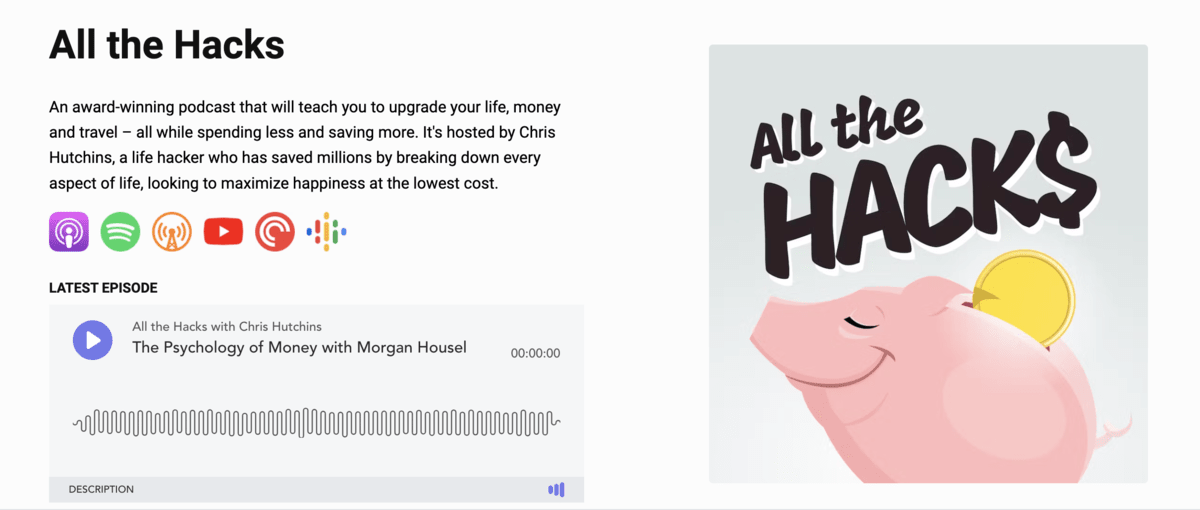 Chris Hutchins started the All the Hacks podcast in May 2021. Today, he reaches over 250,000 downloads per month and has released over 120+ episodes optimizing life, money, and travel and built other content to help listeners upgrade their lives.